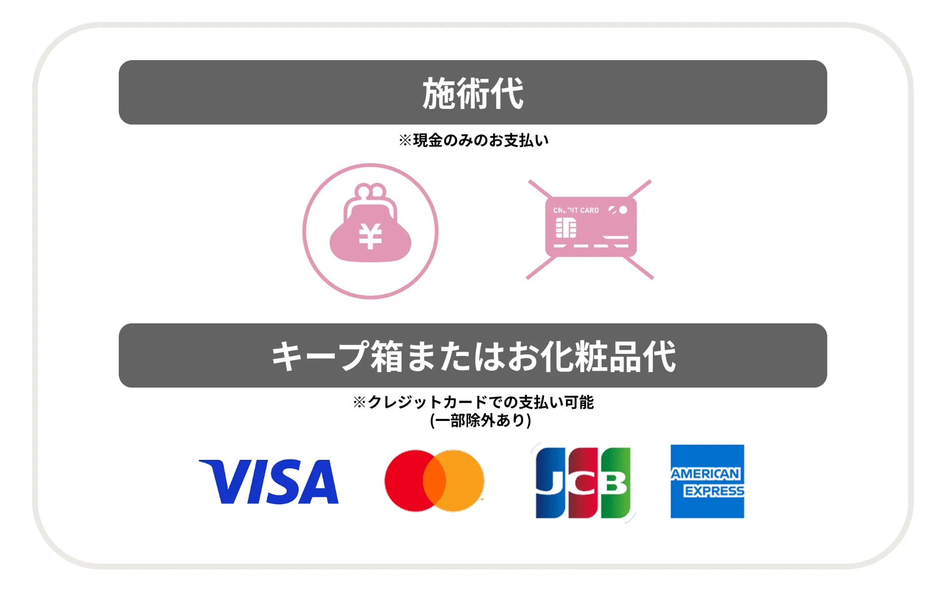お支払いのタイミングは、ご来店時または施術後のいずれでも構いません。お客様のご希望に合わせて対応いたします。ご不明点やご不安な点がございましたら、どうぞお気軽に店舗までお問い合わせください。